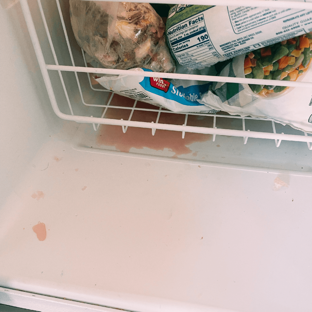 In most freezers, the shelves can get gross with sticky liquid or food that freezes and gets stuck. This normal. I’d say 95% of the freezers we cleaned during move out cleanings had sticky material stuck to the shelves. To make it easier to clean the shelves, I soak them in Dawn Dish Soap and let them sit while I’m cleaning out the rest of the freezer. By the time I’m ready to scrub them at the end, any food comes off a lot easier. Similar to off the rest of the freezer, remember to use hot water when you’re cleaning the shelves to help everything come off without extra force.