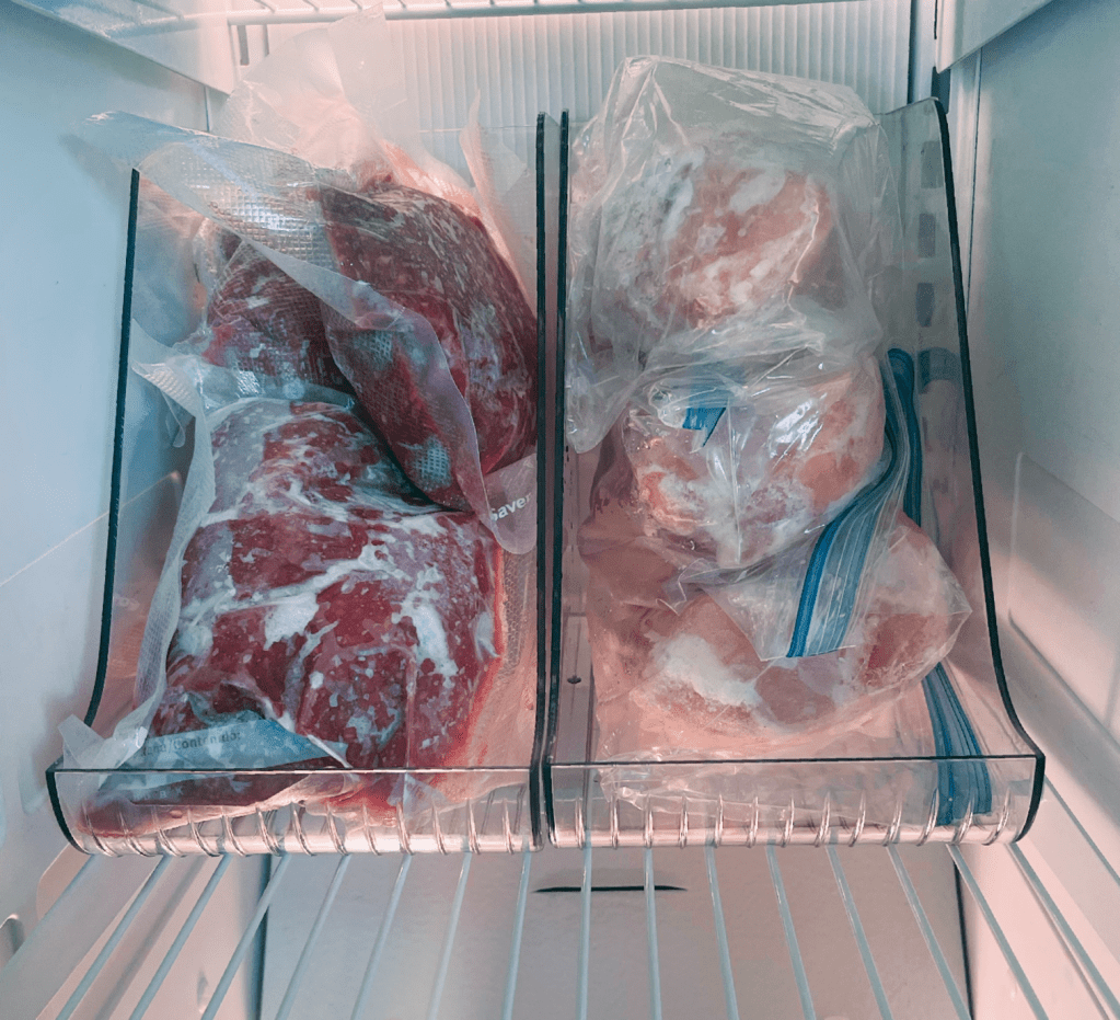 This past weekend, I found some extra storage containers I wasn’t using and started using them in the freezer instead. As you can see in the picture above, I used them to separate different types of frozen meat in the freezer. You can also use them to separate frozen veggies or anything you have a lot of in your freezer. You can find great storage containers for affordable prices on Amazon (this is where I’ve gotten all of my storage containers).